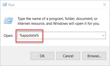 Open Run and type %appdata% to open the Windows AppData Folder.