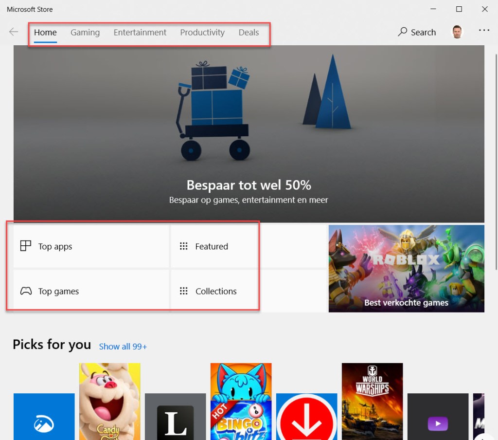 So even if your Windows display language is set to English, whenever you open the Microsoft Store or a Windows App, the language used is Dutch.