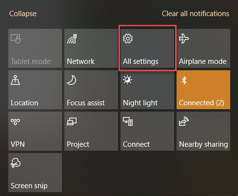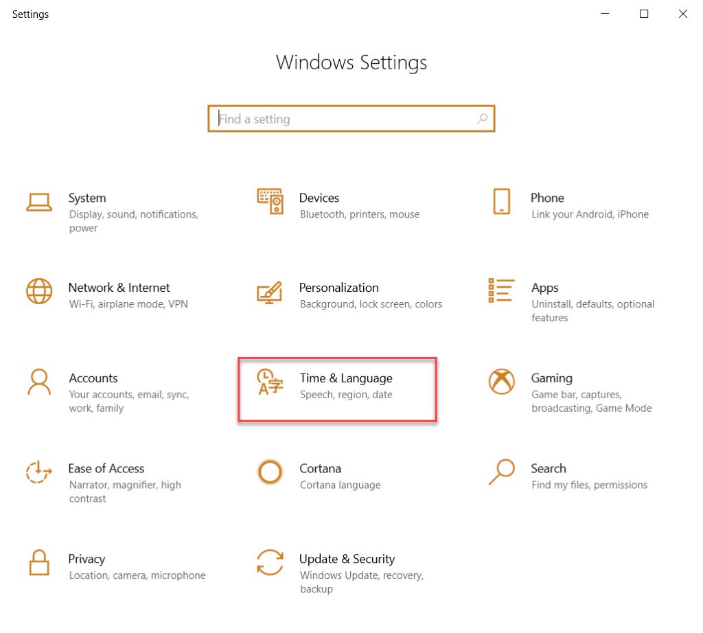 Open All settings (or press the Windows key + I) to open the Windows Settings page and click Time & Language.
