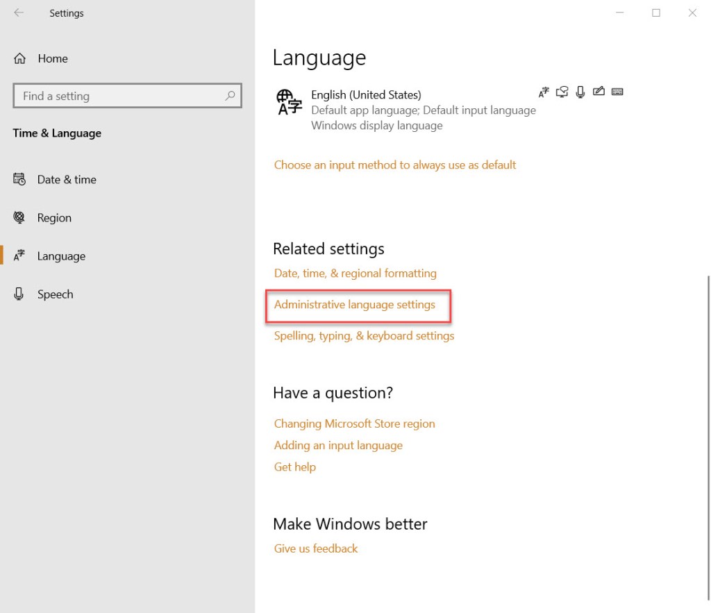 To use the above settings also for your welcome screen, system accounts and new user accounts, scroll down on the Language page and open Administrative language settings.