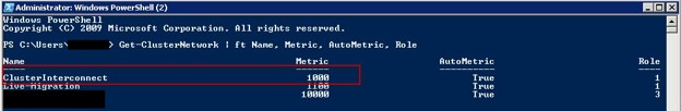 Get-ClusterNetwork | ft Name, Metric, AutoMetric, Role