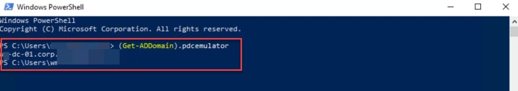 If you are not sure or do not know, which DC currently holds the PDC Emulator role, you can always run the following PowerShell command on any DC to find out: