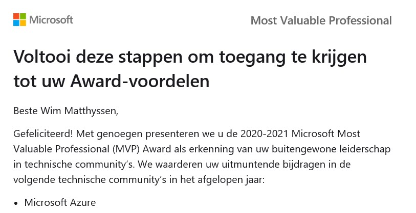 Last week I was very honored to be awarded by Microsoft, with the Microsoft Most Valuable Professional (MVP) award in the Microsoft Azure category. It is my first MVP award, and I could not be more excited about it.