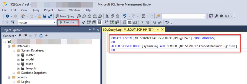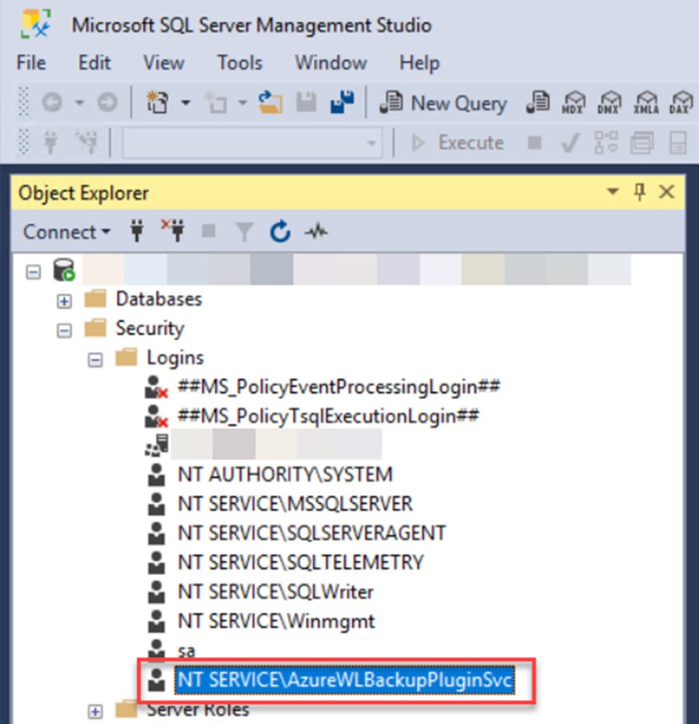 CREATE LOGIN [NT SERVICE\AzureWLBackupPluginSvc] FROM WINDOWS;