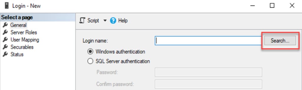 On the SQL Server, first open the Security folder, and then right-click the Logins folder and select New Login