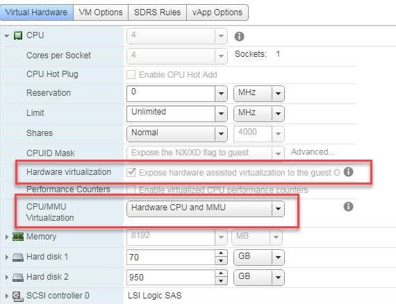 There you need to check the box Expose hardware assisted virtualization to the guest OS. Click OK to save.