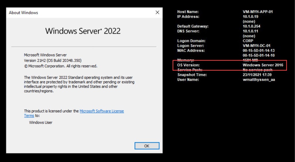 Although the current version of BgInfo, version 4.28, works on a Windows Server 2022 server, it does not report het OS Version correctly. Like you can see on the screenshot below, on a running Windows Server 2022 the OS Version variable reports Windows Server 2016.