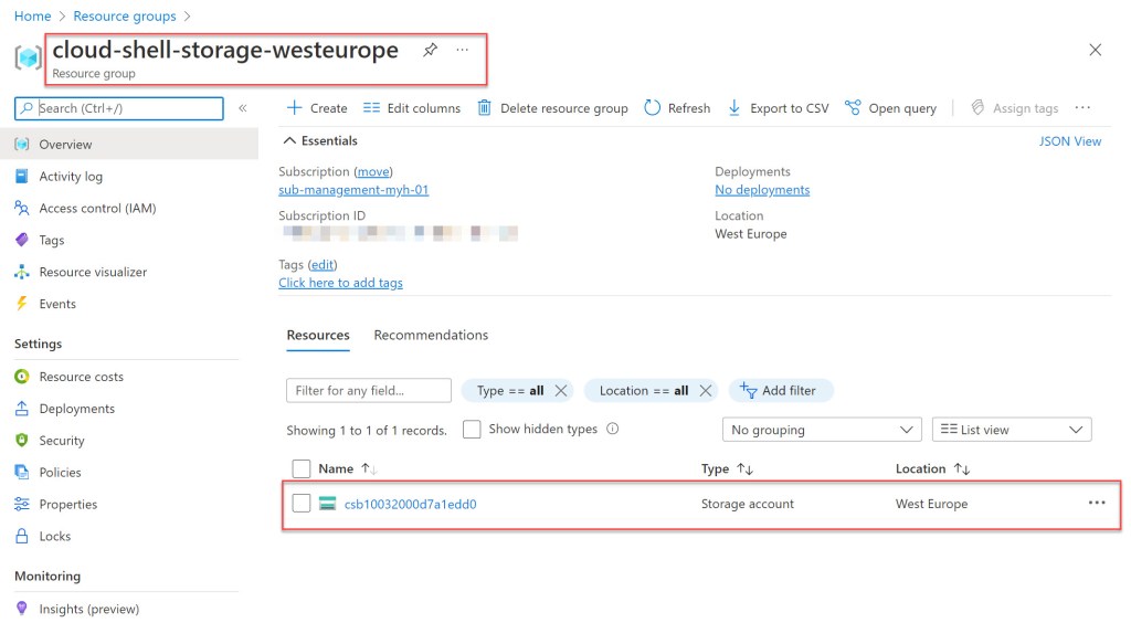Azure Cloud Shell offers a browser-based, cross-platform experience which gives you access to powerful tools to manage your Azure resources. When you use Azure Cloud Shell for the first time, it will prompt you to create a resource group, storage account, and an Azure Files share, as a one-time process.