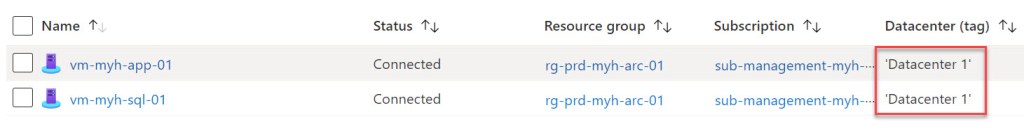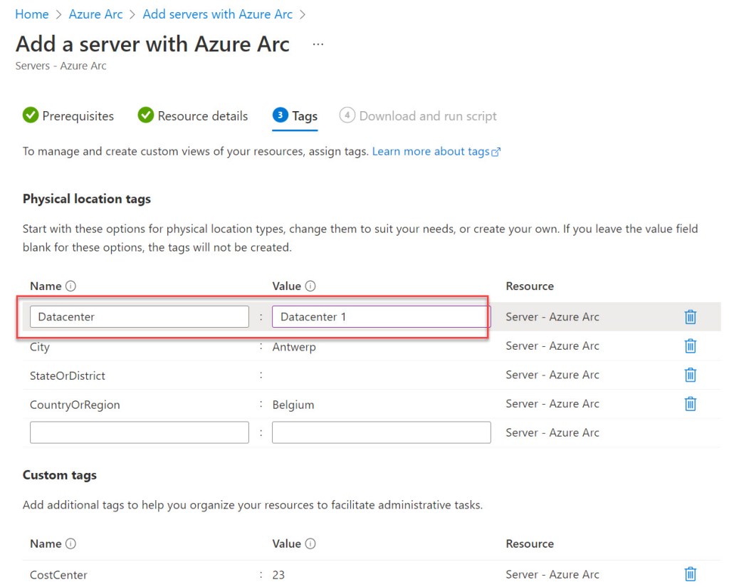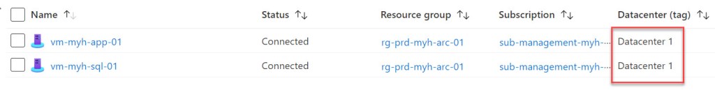 What we see is that most company’s these days already use a specific tagging strategy and naming convention, whether or not aligned with Microsoft’s Cloud Adoption Framework methodologies, to apply tags to all their Azure resources. That is why it is also important to apply the same tagging principals to all Azure Arc resources to keep an identical tagging structure.