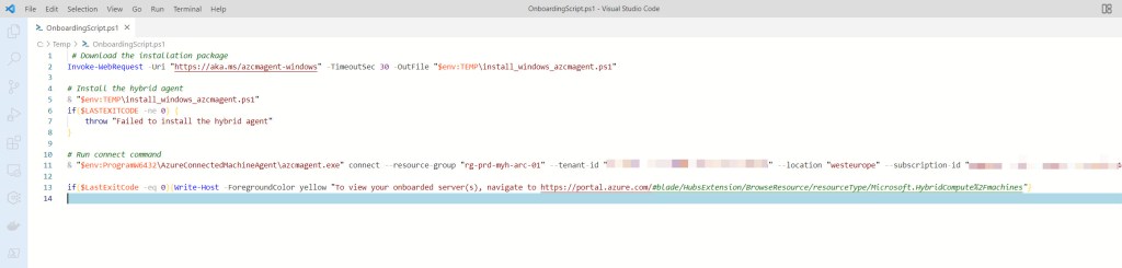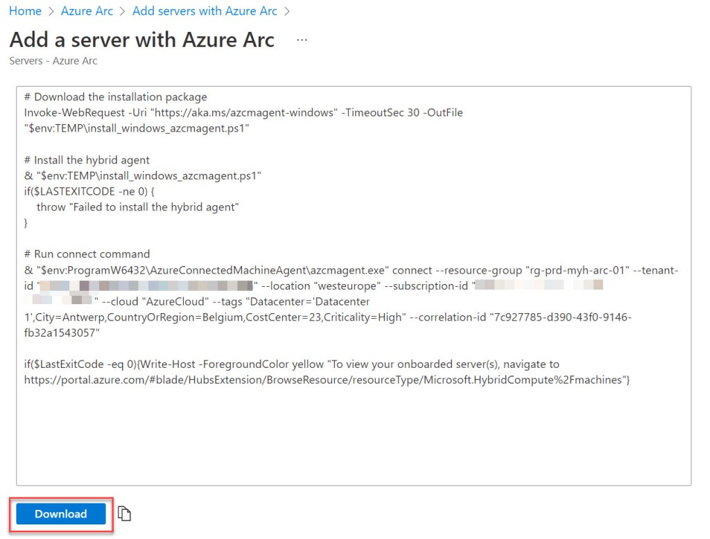 When you use the Azure Portal to onboard a server, you normally open the Servers – Azure Arc page, from where you click Generate script to create the deployment script which automates to Azure Arc onboarding process.