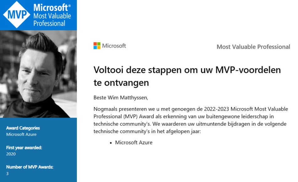 Pingback: Microsoft MVP 2022-2023 Microsoft Azure – Wim Matthyssen - Firnco