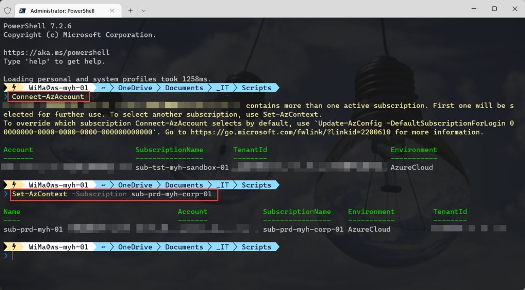 Set-AzContext -subscriptionId $subNameManagement.subscriptionId | Out-Null