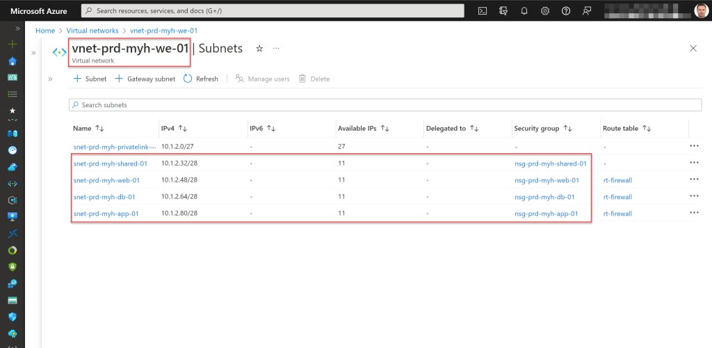 - An existing VNet(s) with one or more subnets associated with different NSGs.