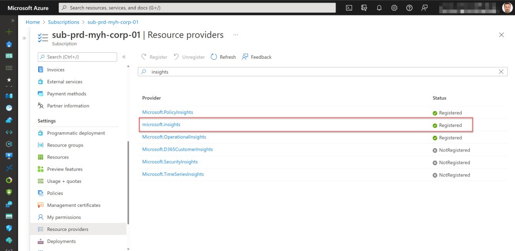 Register-AzResourceProvider -ProviderNamespace Microsoft.Insights | Out-Null