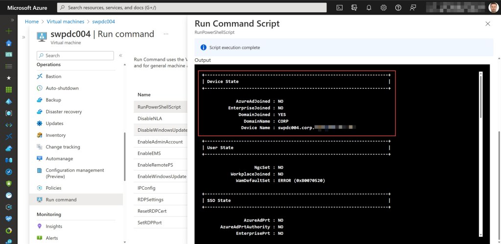 I hope this tip helps you and comes in handy whenever you quickly need to find out the current device join state of an Azure VM.