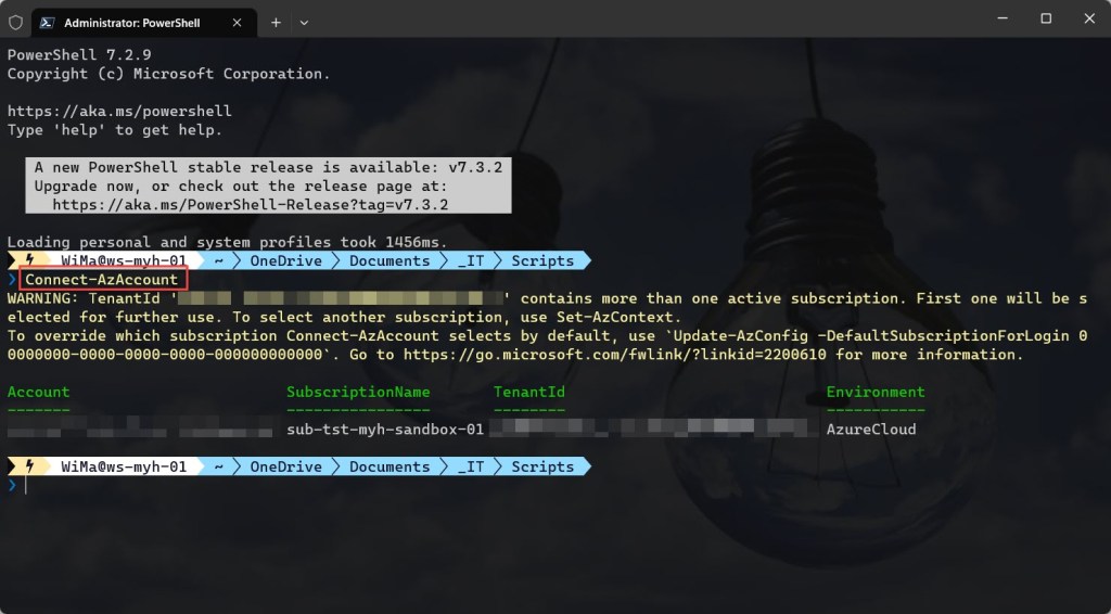 Don’t forget to sign in with the Connect-AzAccount cmdlet to connect your Azure account when running your script from Windows Terminal or Windows PowerShell.