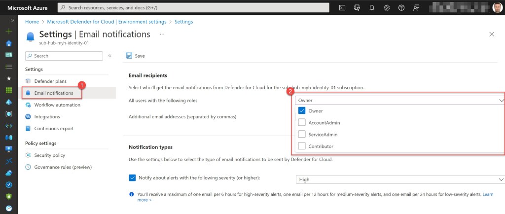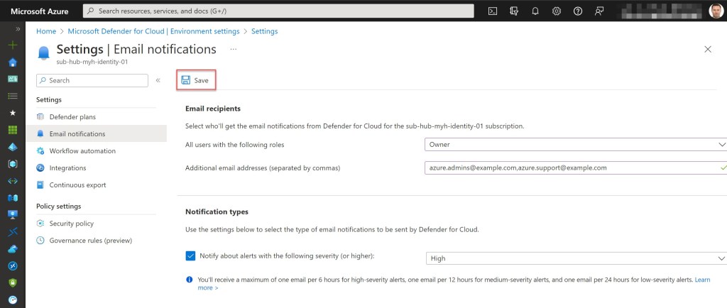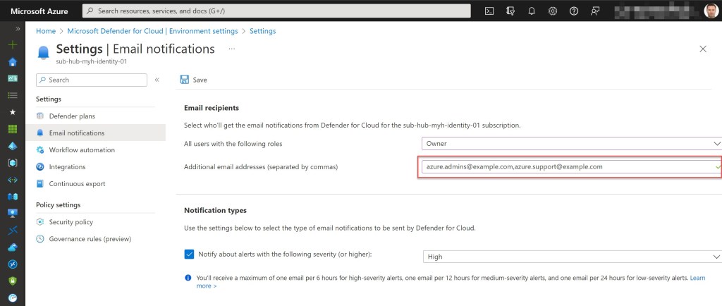 Remember to configure the email notification settings separately for each Azure subscription in your environment.