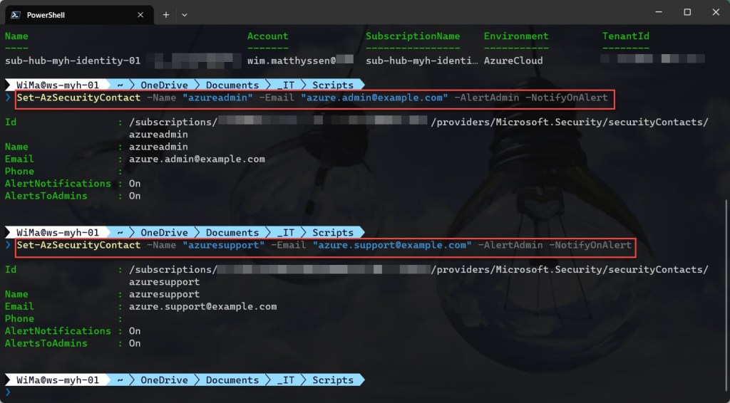 Next, run the Set-AzSecurityContact cmdlet to add all the extra security contact email addresses.