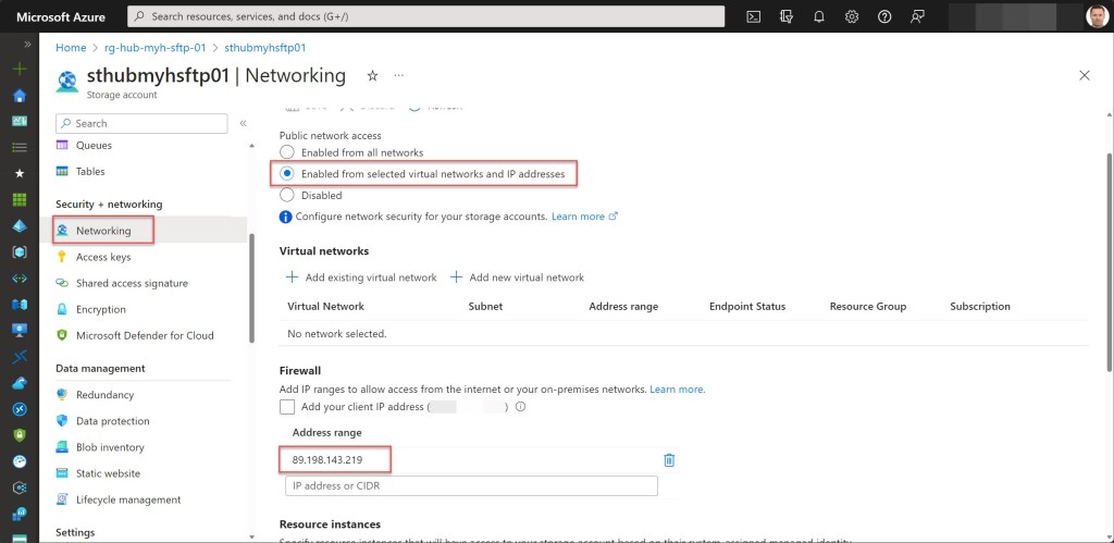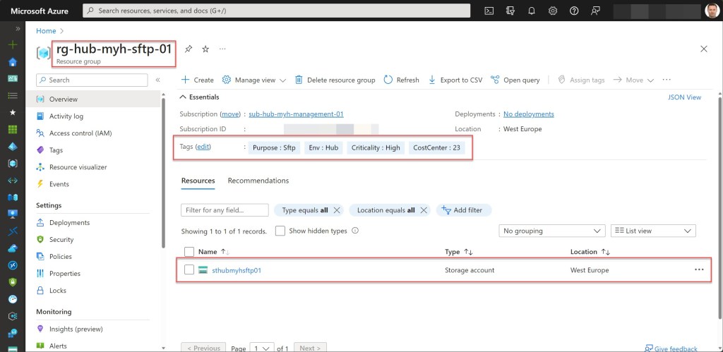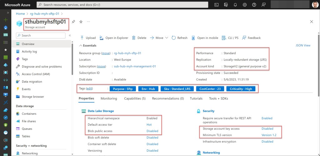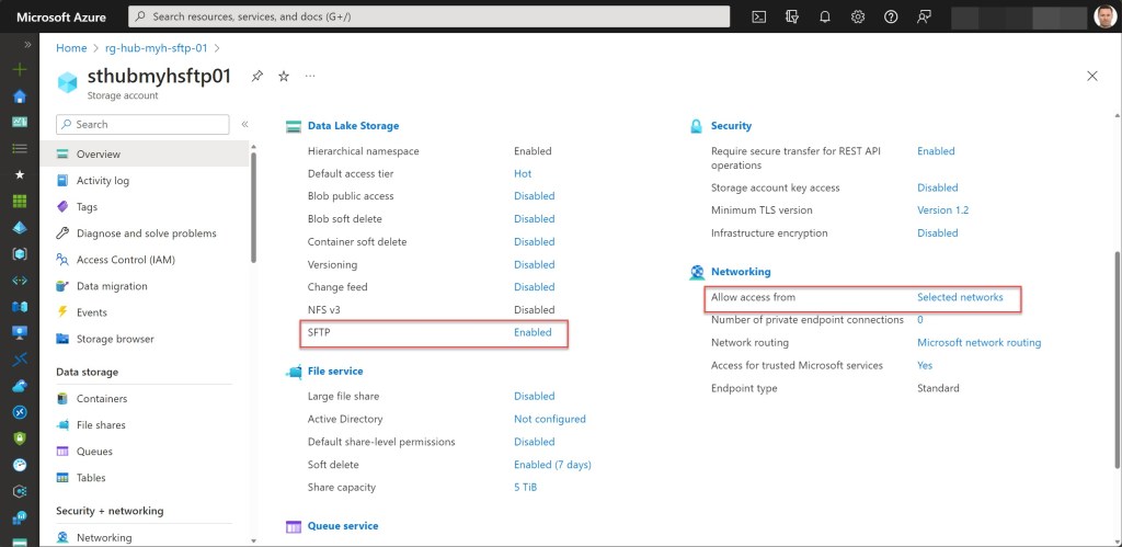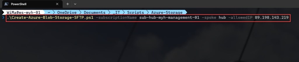 -> .\Create-Azure-Blob-Storage-SFTP -SubscriptionName sub-hub-myh-management-01 -Spoke hub -AllowedIP 89.198.143.219
