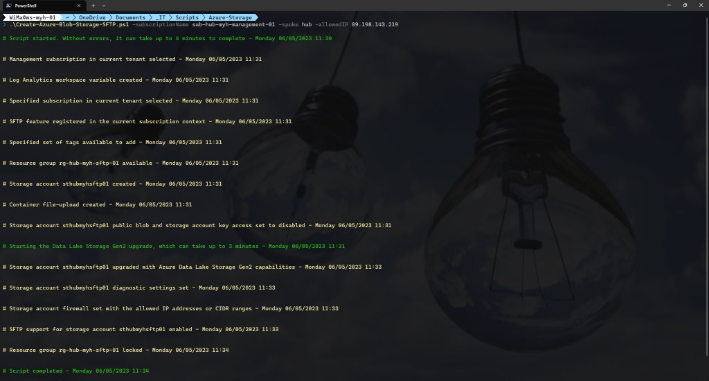 I hope this Azure PowerShell script is useful for you and provides you with a good starting point to use SFTP in your Azure environment.