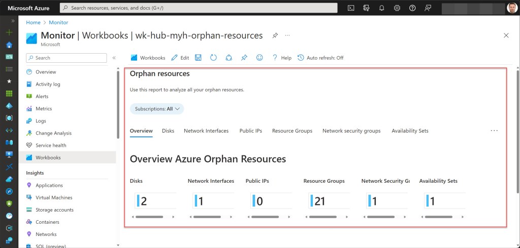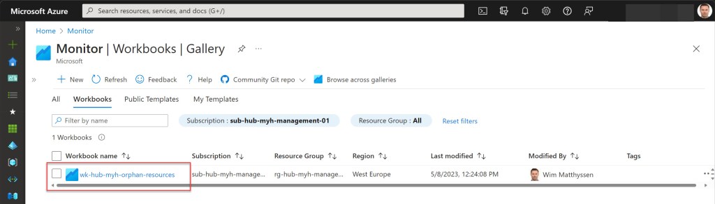 As the example* community Workbook, I will use the Azure Orphan Resources Workbook created by Dolev Shor and Emil Wasilewski to import it into my Azure environment.