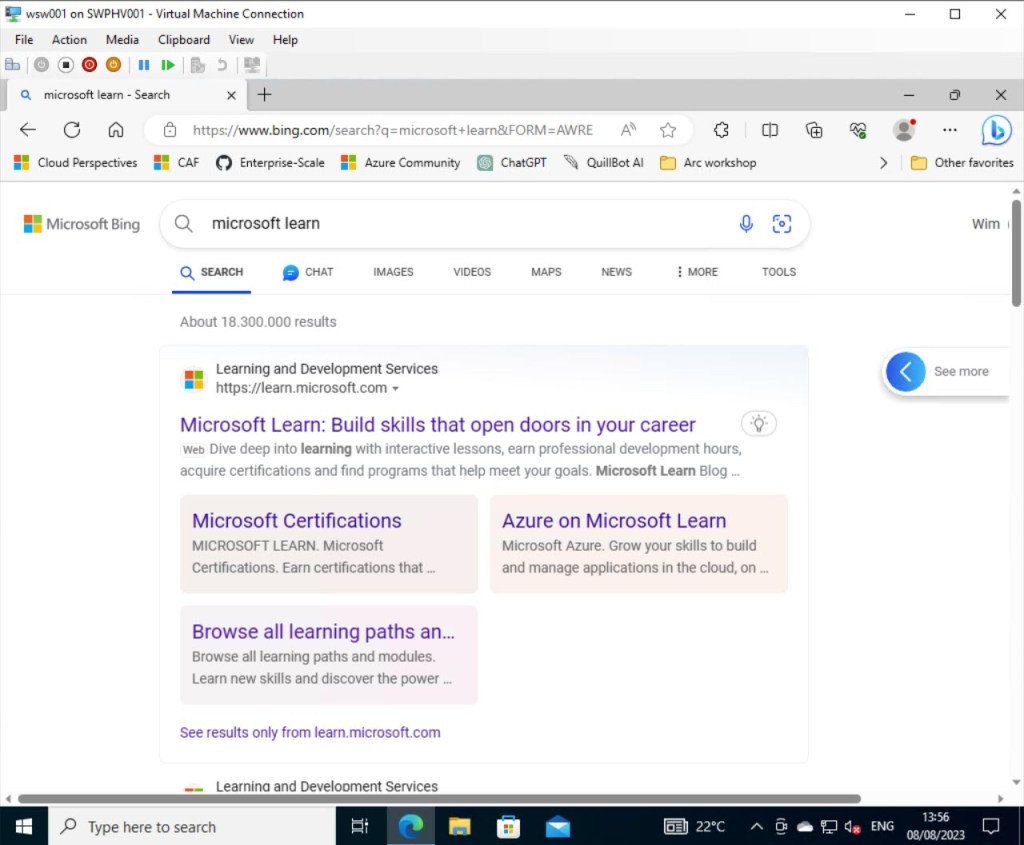 Login to the Hyper-V management VM using an account with administrator privileges and launch the Edge browser within this VM.
