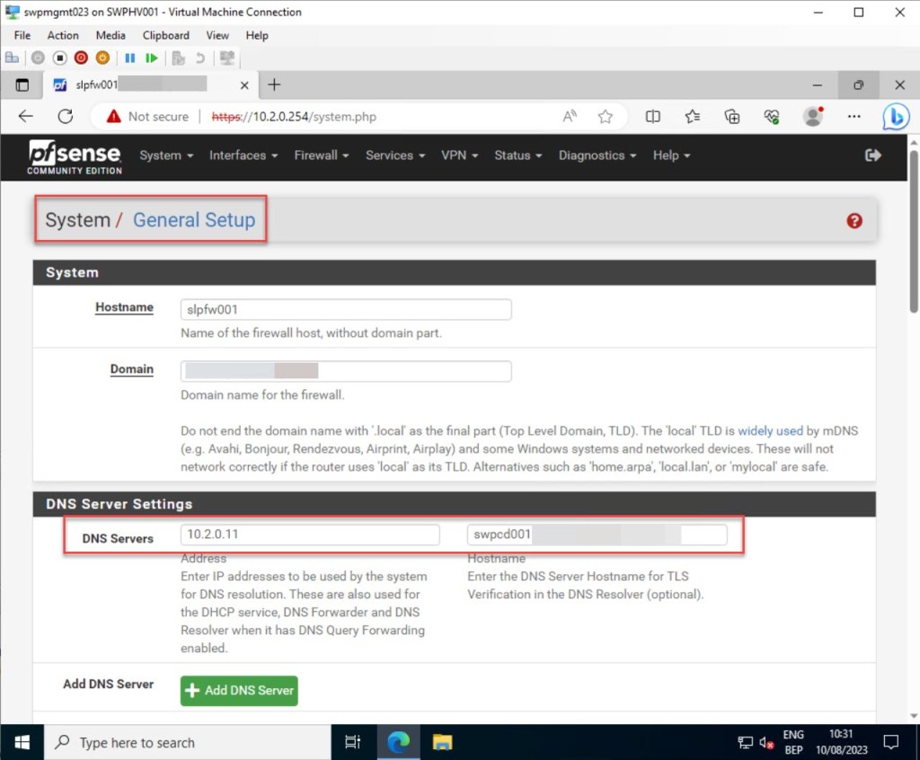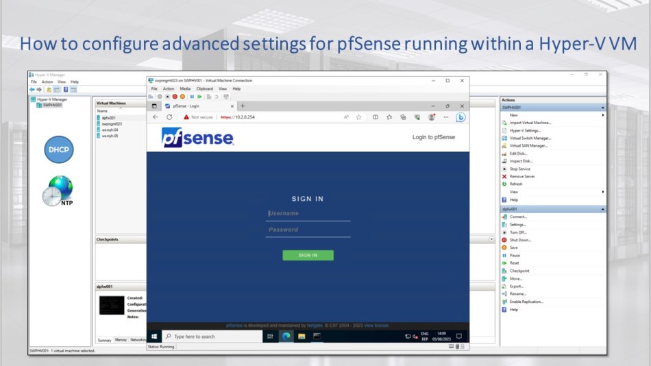 - A Hyper-V VM with all the necessary settings and pfSense already configured via the web configuration wizard, as demonstrated in the previous blog posts.