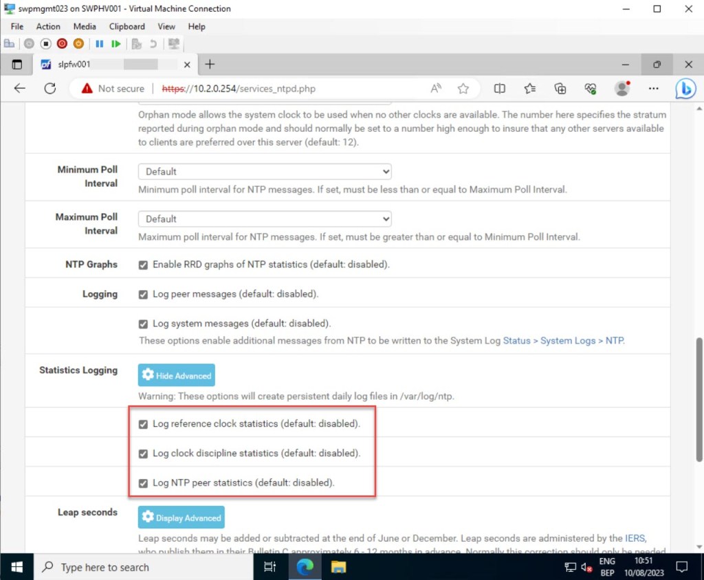 In addition to the logging settings mentioned earlier, you can also enable certain statistics logging settings, such as “Log reference clock statistics” and “Log clock discipline statistics.”