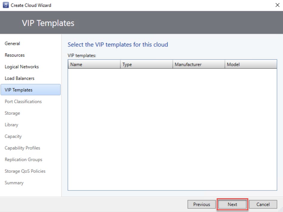 On the VIP Templates page, simply check the boxes next to the VIP templates you wish to include in the private cloud, and then click “Next.”