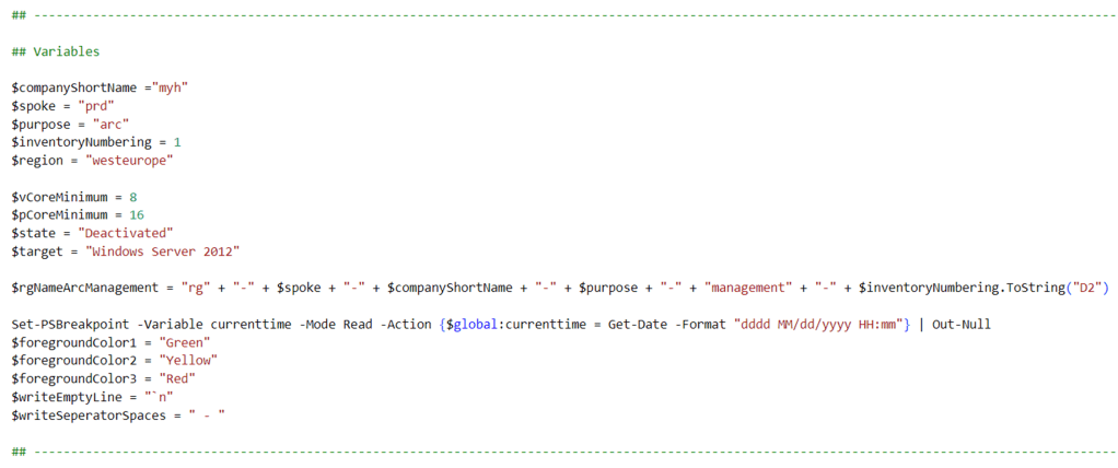 Before using the script, customize all variables according to your specific requirements (an example is provided below). Once customized, execute the script using Windows Terminal, Visual Studio Code, or Windows PowerShell. Alternatively, you can run it directly from Cloud Shell.
