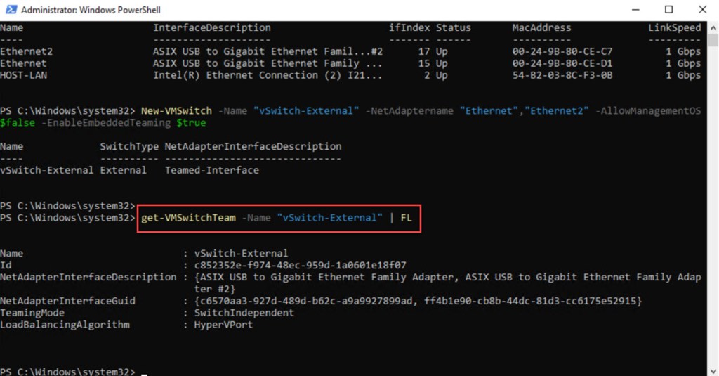0 comments on “How to combine two USB 3.0 Gigabit Ethernet adapters as an external virtual switch in Hyper-V with PowerShell”