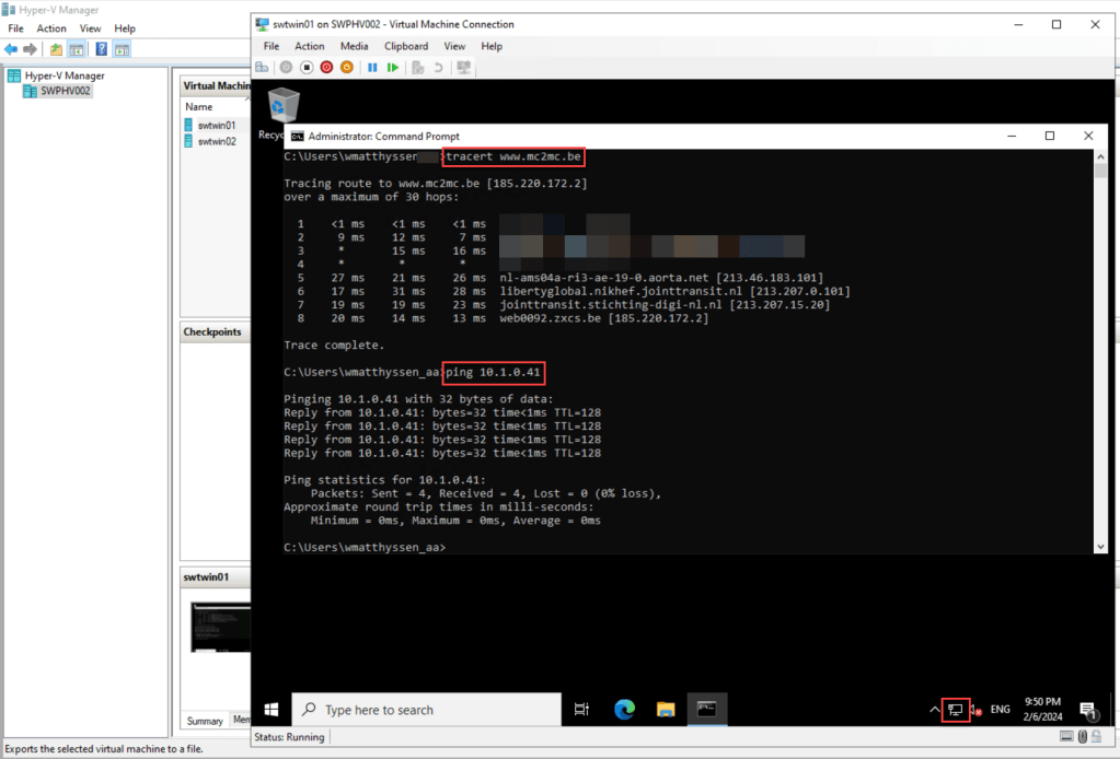 - One or two running VMs on the Hyper-V host to test the network connectivity of the newly created external vSwitch.
