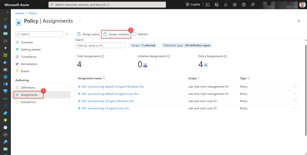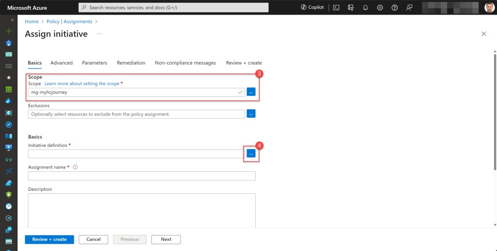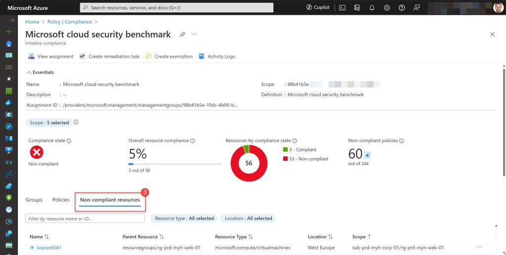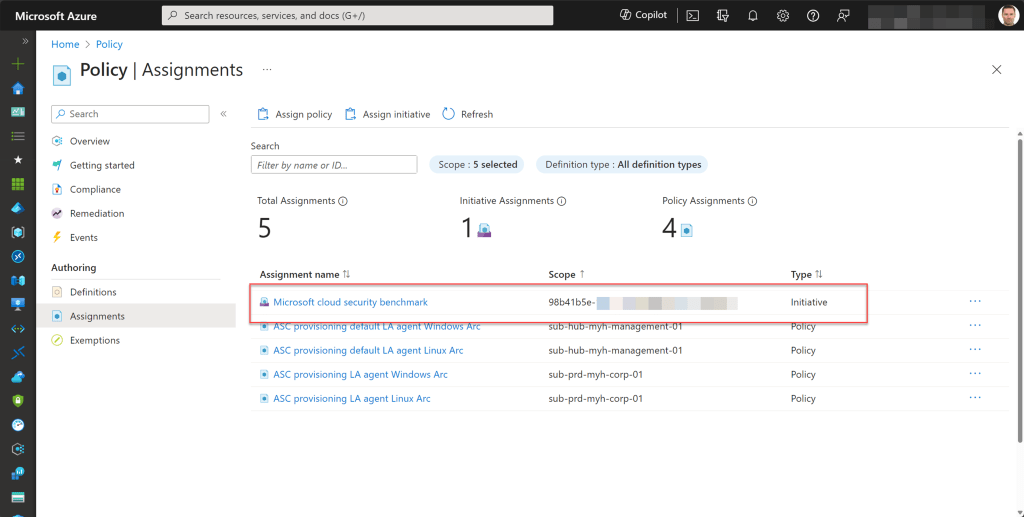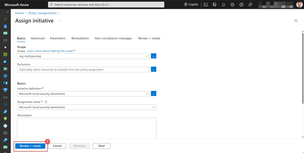 I typically assign this initiative from within Azure Policy to the company’s top-level management group. By doing so, all management groups underneath automatically inherit this initiative assignment.
