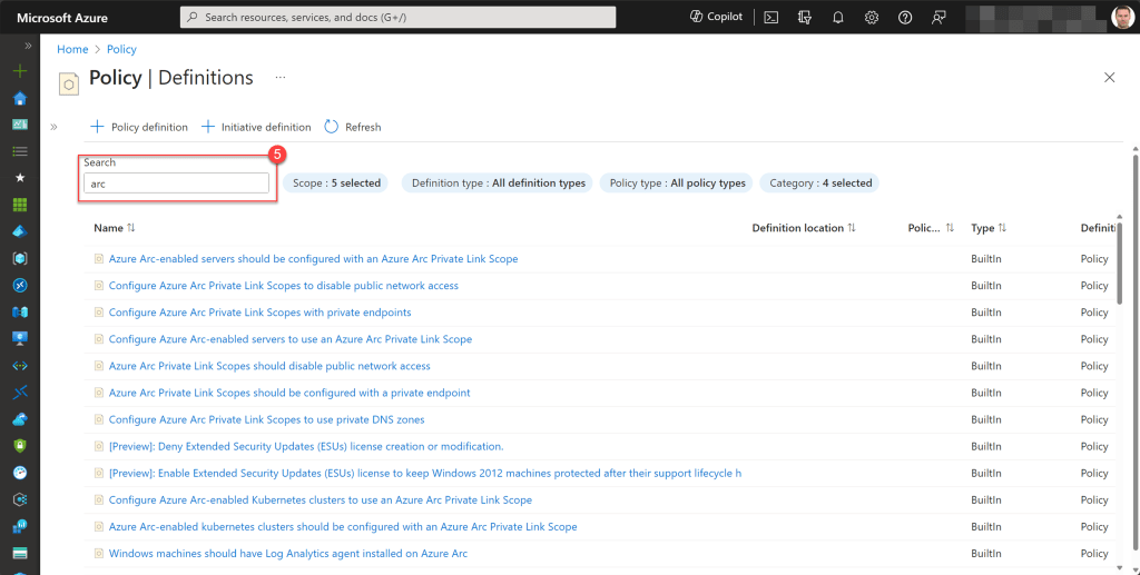 Once you’ve reviewed all these policies and compiled a list of those you wish to assign, my suggestion is to consolidate them into a single initiative or multiple initiatives that are more focused on specific Azure Arc-related resources.