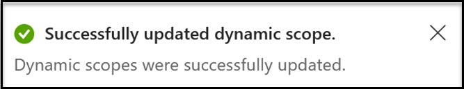After registering all the required resource providers, you should be able to update or create the specific dynamic scope, just like I was able to in my case.