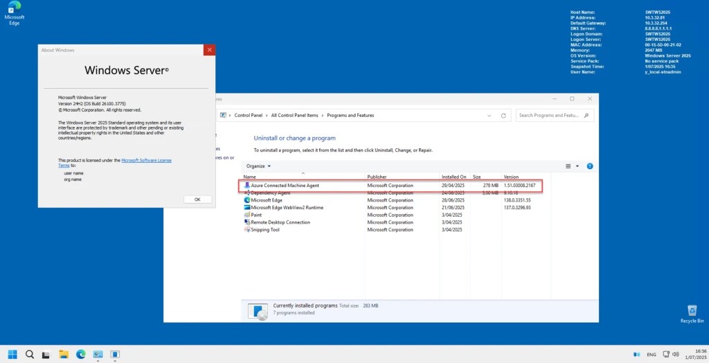 - A server (physical or virtual) running Windows Server 2019, 2022, or 2025 that is onboarded in Azure Arc.