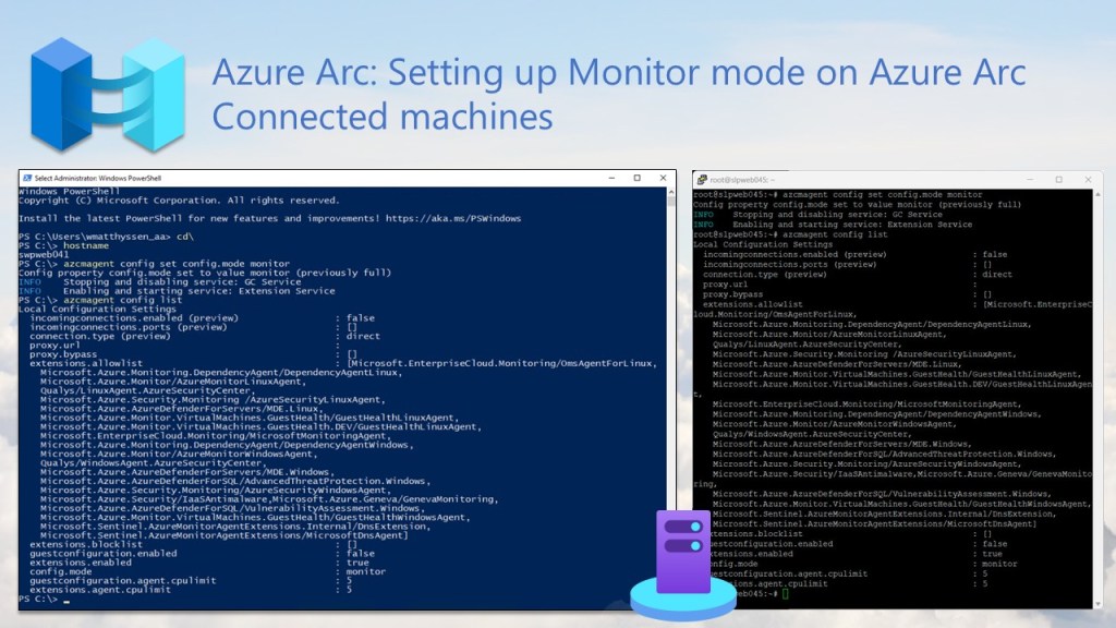 If you’re a Hybrid Cloud or IT administrator who uses Azure Arc primarily for monitoring and security, especially to collect logs from connected systems, it’s important to configure the Azure Connected Machine Agent correctly, either before or after deployment, by enabling Monitor mode.