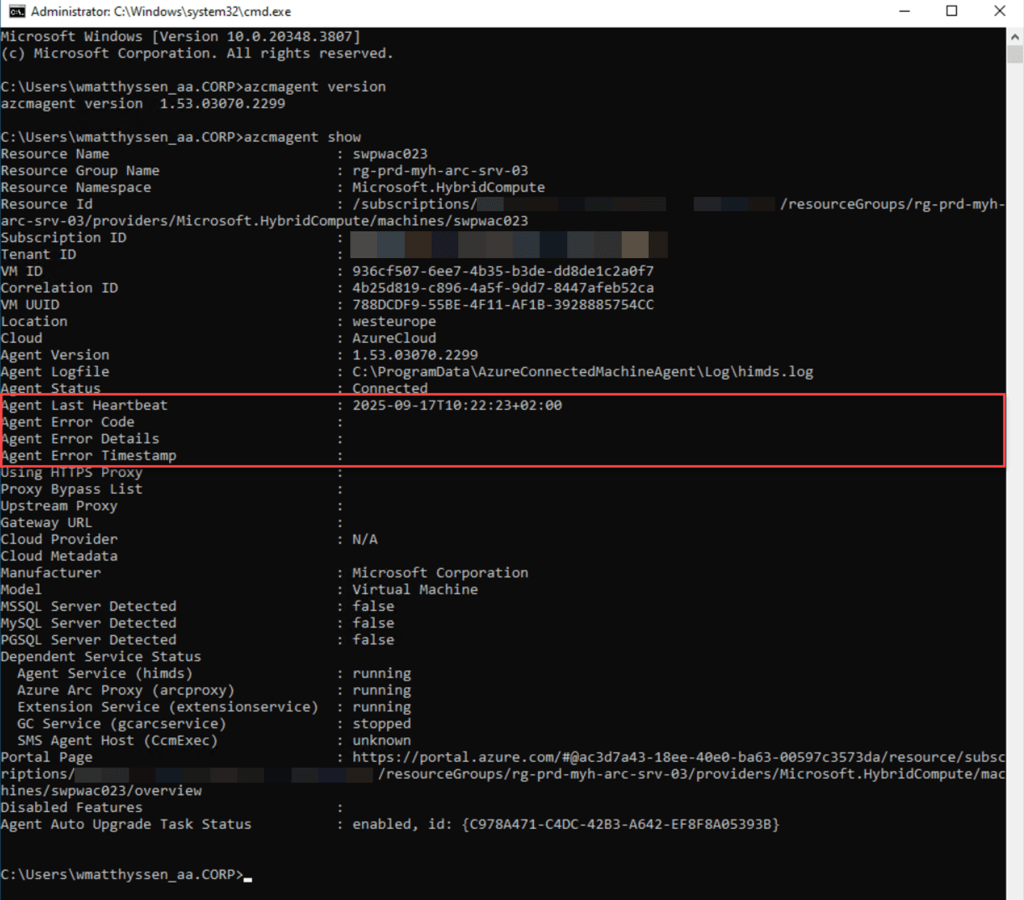 Ensuring that your machine has a reliable network connection is essential for the agent to function properly. Some time ago, I wrote a blog post about checking the connectivity status of the Azure Connected Machine agent in various ways, which can help you troubleshoot any Arc-related connectivity issues you might encounter.