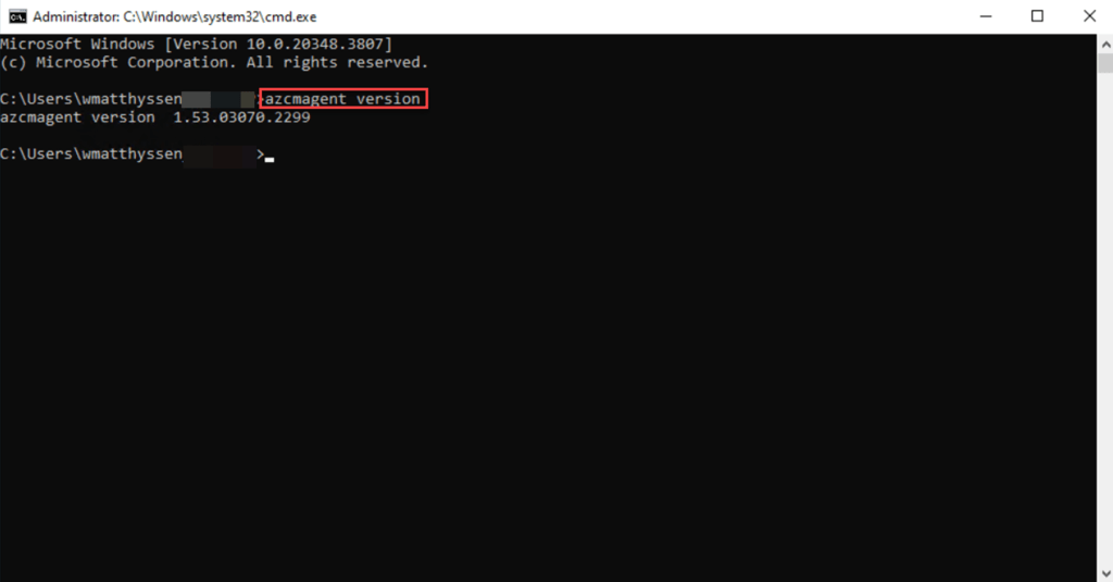 Next, type azcmagent version. This command will show whether the agent is installed and display its current version.
