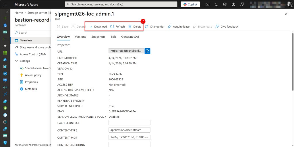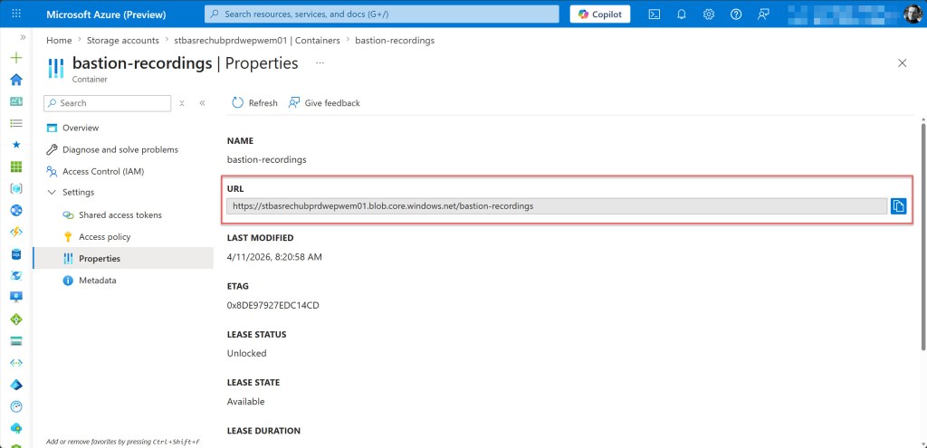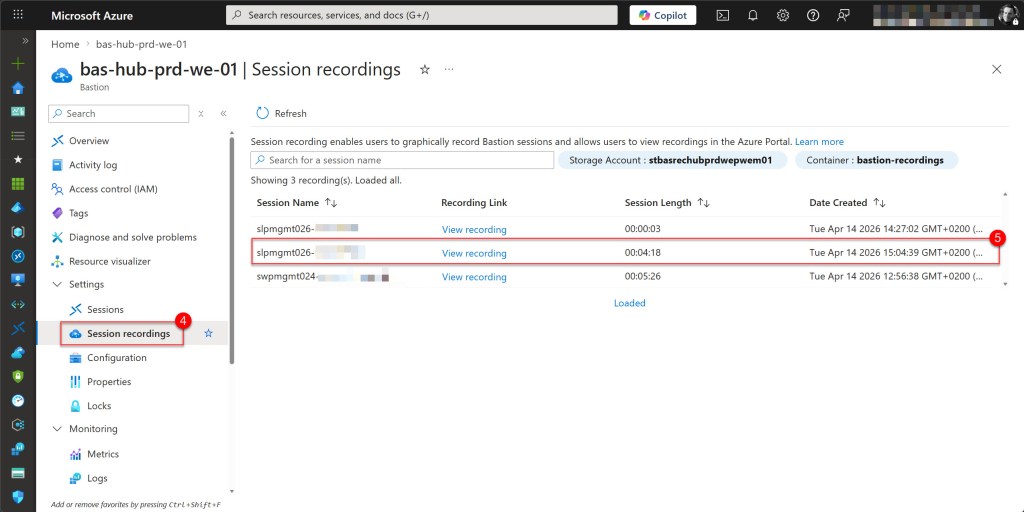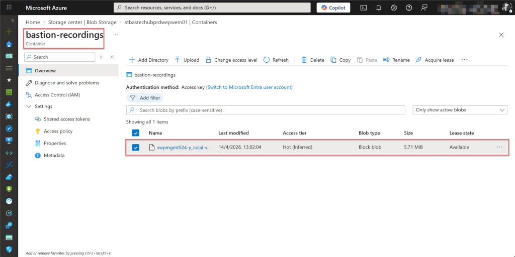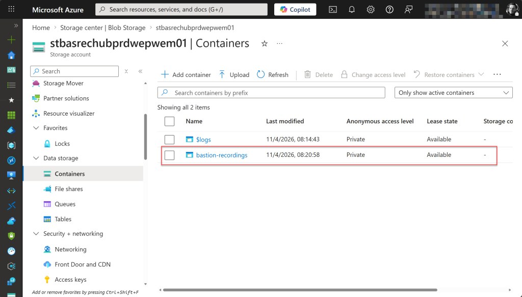 Azure Bastion session recording provides a powerful capability for security auditing and compliance, but only if it is configured correctly.