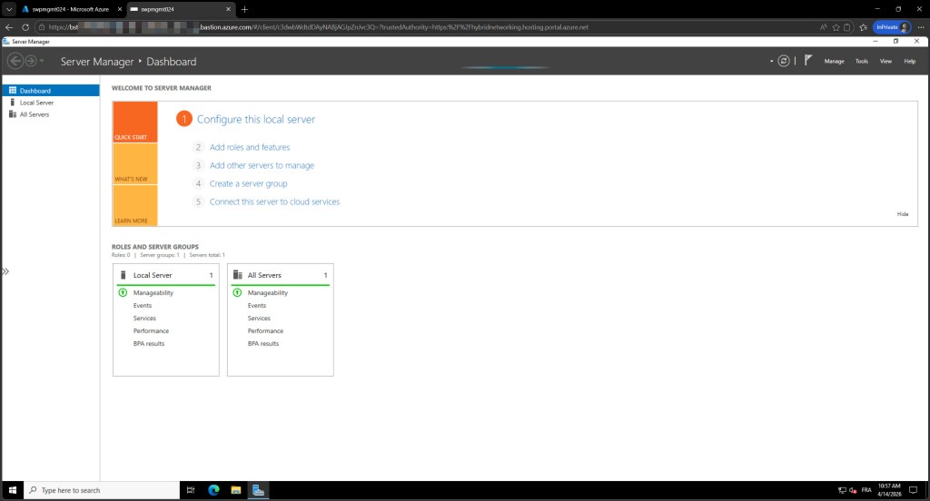With session recording now configured on your Azure Bastion host, it is time to validate the setup by connecting to a Windows virtual machine. As soon as you establish a connection through Bastion, session recording begins automatically, capturing all activity during the RDP session.