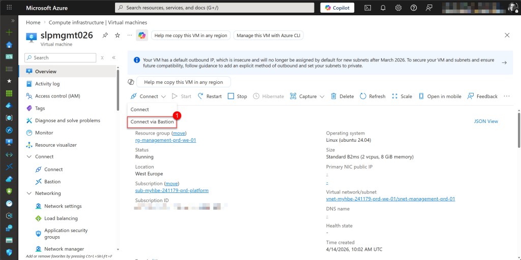 - At least one active Azure subscription. If you are following the Cloud Adoption Framework (CAF) enterprise-scale architecture, ensure you have access to your Connectivity subscription (where Bastion usually resides) and your Management or Landing Zone subscriptions.