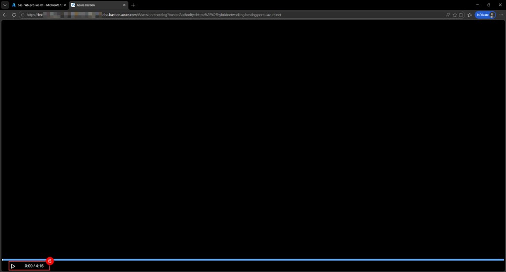 💡 Azure Bastion session recordings cannot be played locally after download. The recording files have no file extension and use a proprietary format stored as generic binary data, rather than a standard video format. To view recordings, you must use the built-in player on the Session recordings page of your Azure Bastion resource, as mentioned above.
