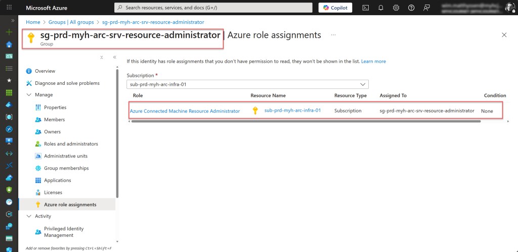 - An Azure administrator account with at least the Azure Connected Machine Resource Administrator role, preferably assigned through membership in a security group.