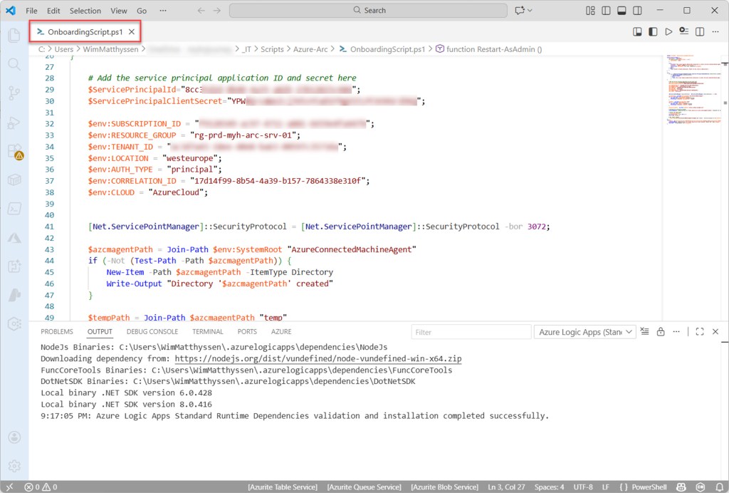 When you use this script with a service principal, the connection to Azure Arc is established automatically using the azcmagent command. This means that after running the script, no manual intervention is required.