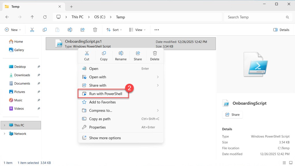 Then run the script by right-clicking it and selecting ‘Run with PowerShell,’ and wait until it completes.