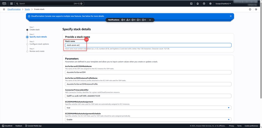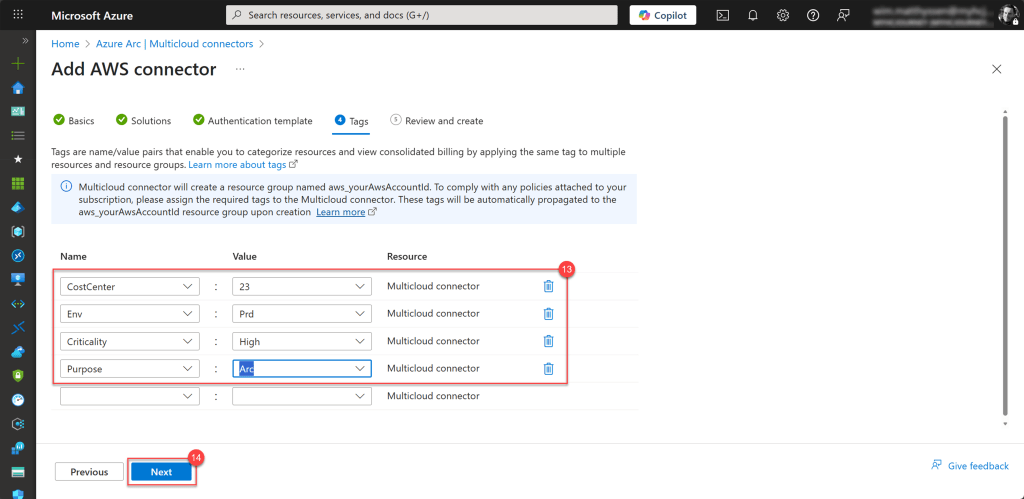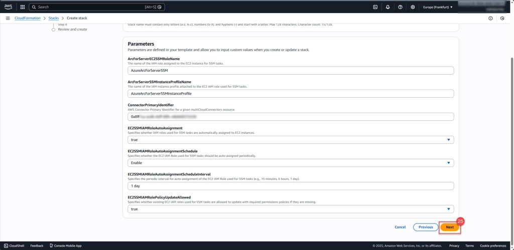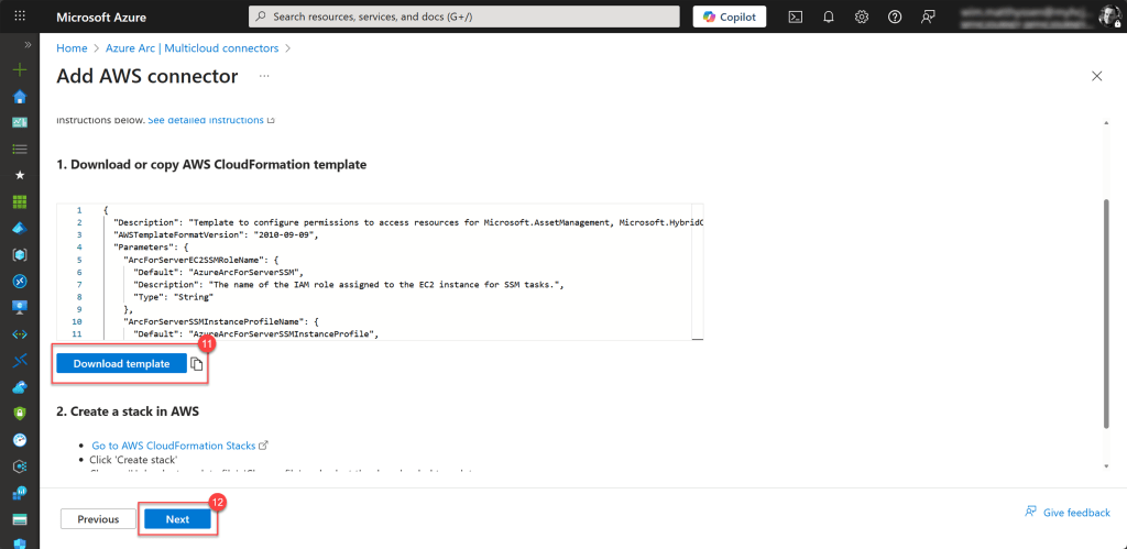 *💡 This template contains the necessary resources, such as the IAM role and trust relationship, that Azure Arc needs to authenticate and communicate with your AWS account.