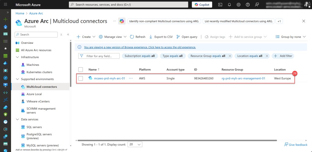 Once configured*, the connector provides a centralized and consistent approach to managing, monitoring, and governing resources in AWS and GCP alongside your Azure and Arc-enabled resources. This helps simplify operations and supports scenarios such as cloud-to-cloud migrations and unified governance.