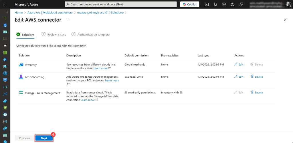 To do this, go to your Multicloud connector and select Solutions. On the Solutions blade, click Edit.