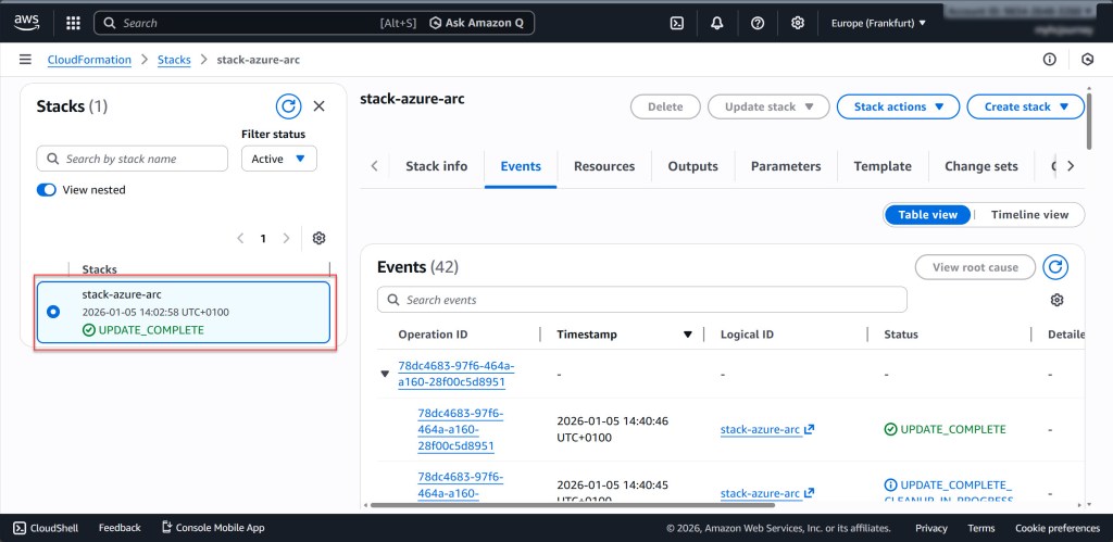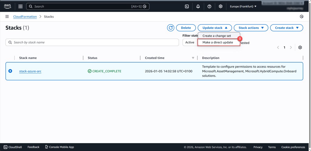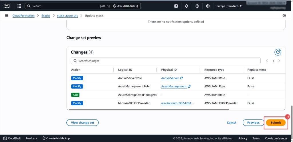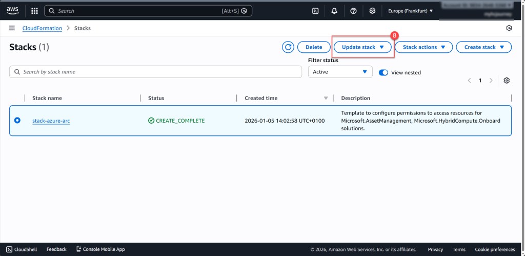 To update it, go to the AWS CloudFormation stack associated with your Multicloud connector and click Update stack.